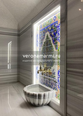 В производстве продукции мы учитываем ее назначение, выбираем способ обработки, в зависимости от характеристик камня. Например, при изготовлении изделий из мрамора используем шлифовку, полировку. Полированной плиткой облицовывают стены, пол, декорируют фасады. Для ступеней достаточно шлифования. Из мрамора заказывают, в основном, подоконники, столешницы, отделку ванных комнат, входных групп.
